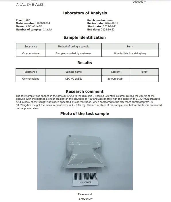 - 100 Tablets of Oxymetholone (50 mg/tab)