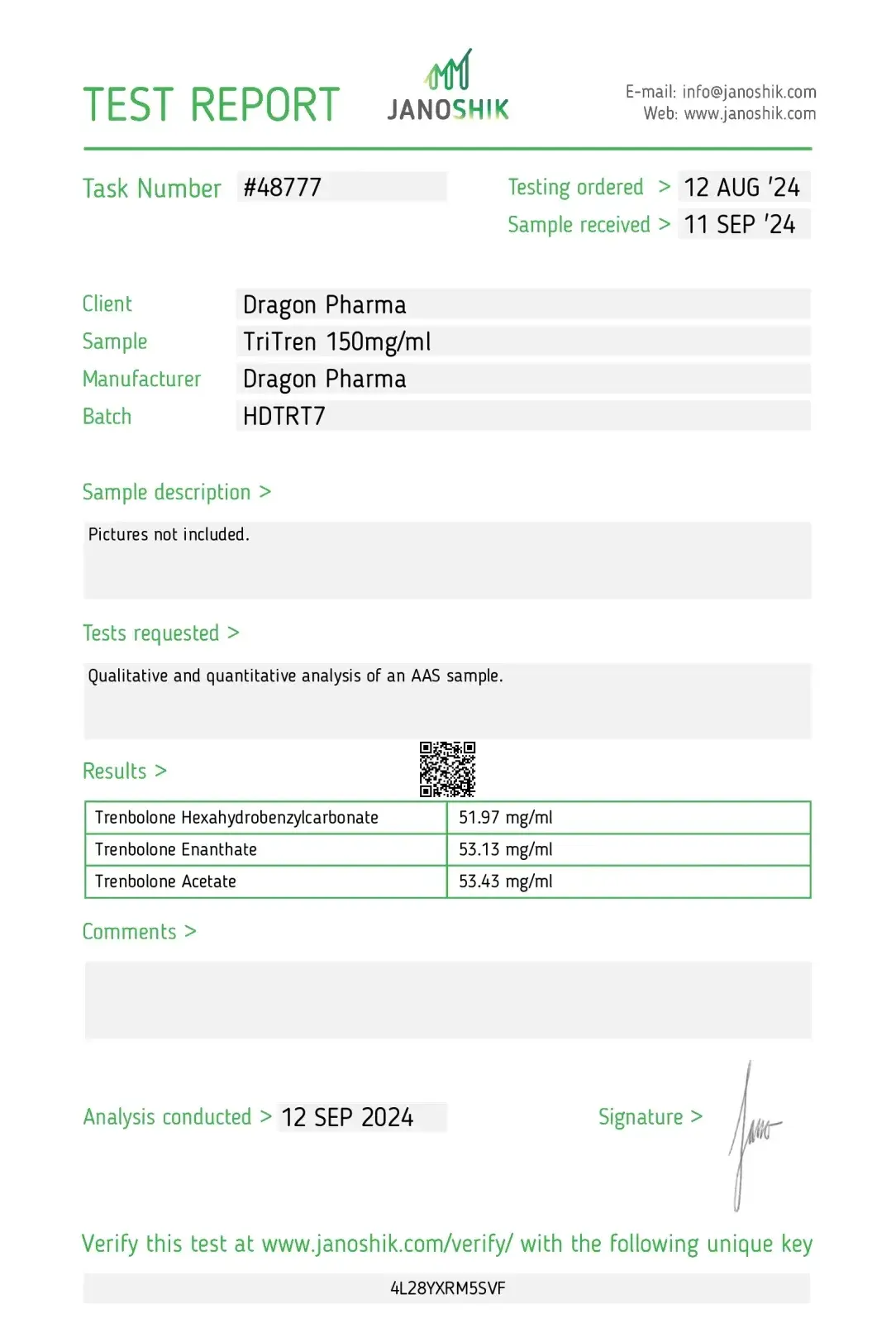 Substance: Trenbolone Enanthate, Testosterone Enanthate, Dragontanolone Enanthate
