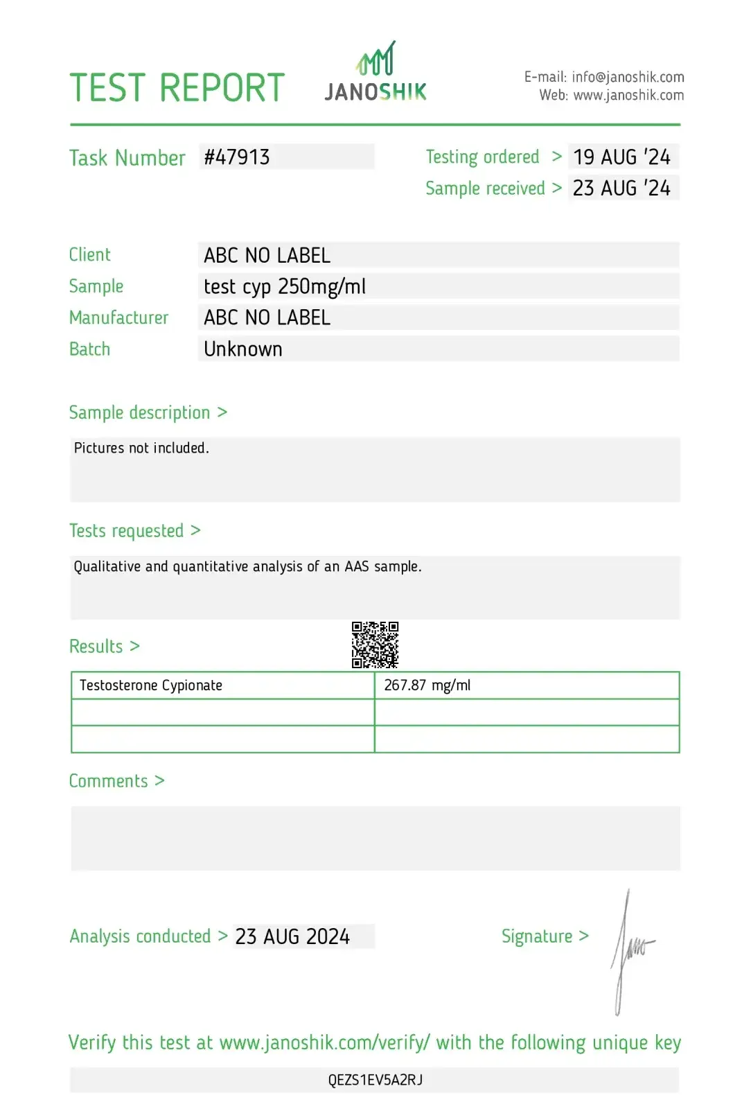 Active Substance: Testosterone Cypionate